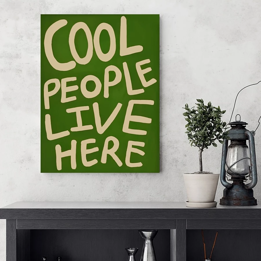 “Cool People Live Here” Bold Typography Canvas Wall Art